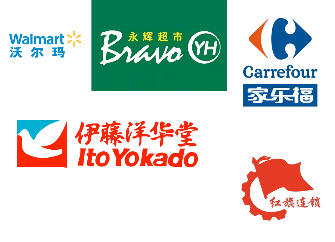 在沃爾瑪、永輝、家樂福、伊藤洋華堂、紅旗等大型超市